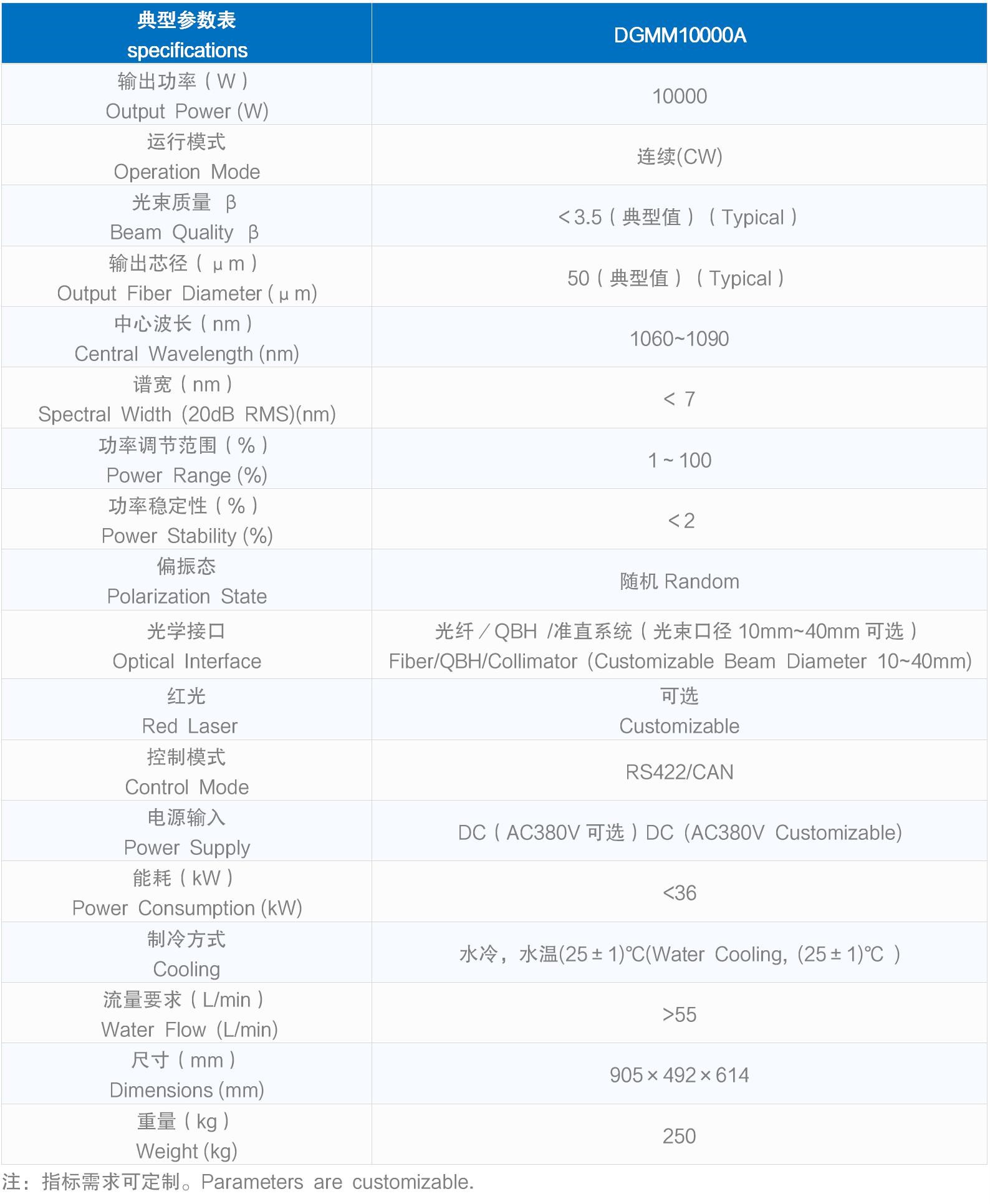 光學(xué)接口 Optical Interface | 光纖/QBH /準(zhǔn)直系統(tǒng)(光束口徑10mm~40mm可選) Fiber/QBH/Collimator (Customizable Beam Diameter 10~40mm) | ||