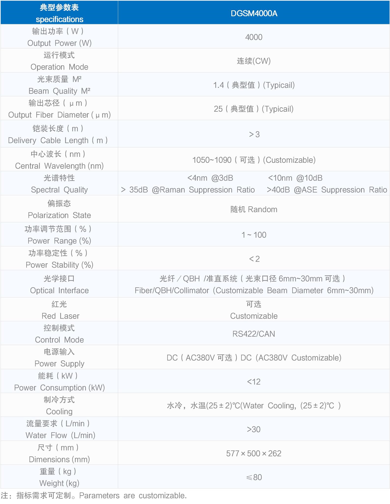 光學(xué)接口 Optical Interface | 光纖/QBH /準(zhǔn)直系統(tǒng)(光束口徑6mm~30mm可選) Fiber/QBH/Collimator (Customizable Beam Diameter 6mm~30mm) | ||